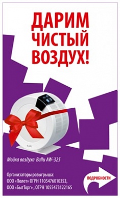 *Призом является Увлажнитель (мойка воздуха) Ballu AW-325. Обмен приза на денежные средства не производится.