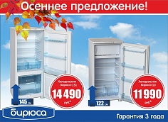 Уважаемые покупатели!Специальное предложение в магазинах «Рембыттехника» - Спеццены на две модели холодильников Бирюса!